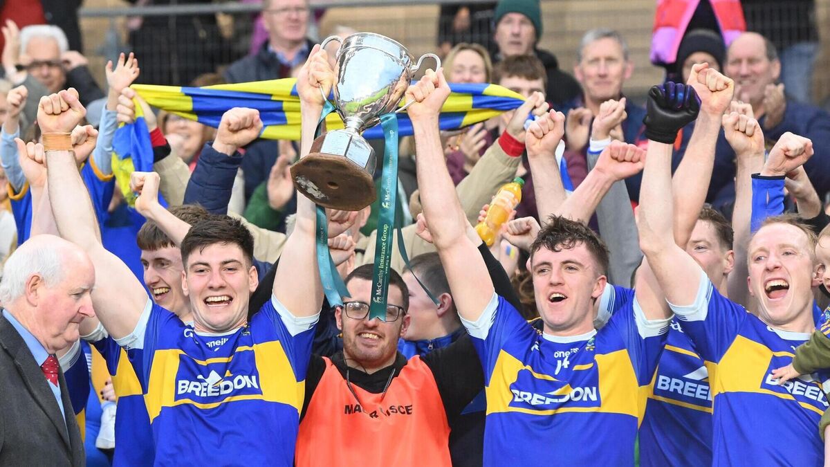 2024: Kilshannig captain Colm O'Shea and Eanna O'Hanlon raise the Billy Long cup. Pic: Eddie O'Hare